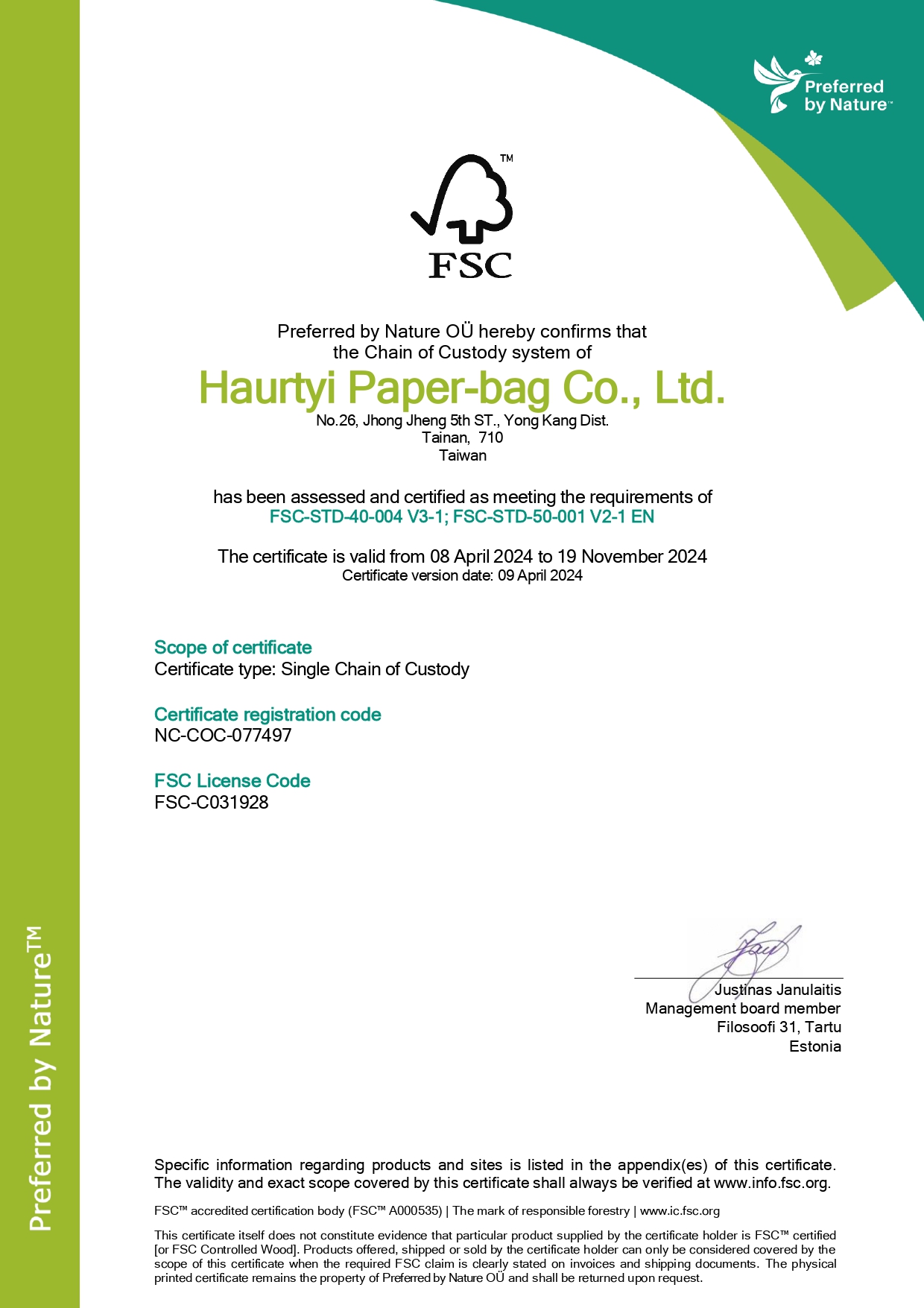 這是我們的堅持,也是我們的承諾。未來,我們將持續在兼顧品質、效率與服務的狀況下提供產品,成為紙袋的標竿企業。