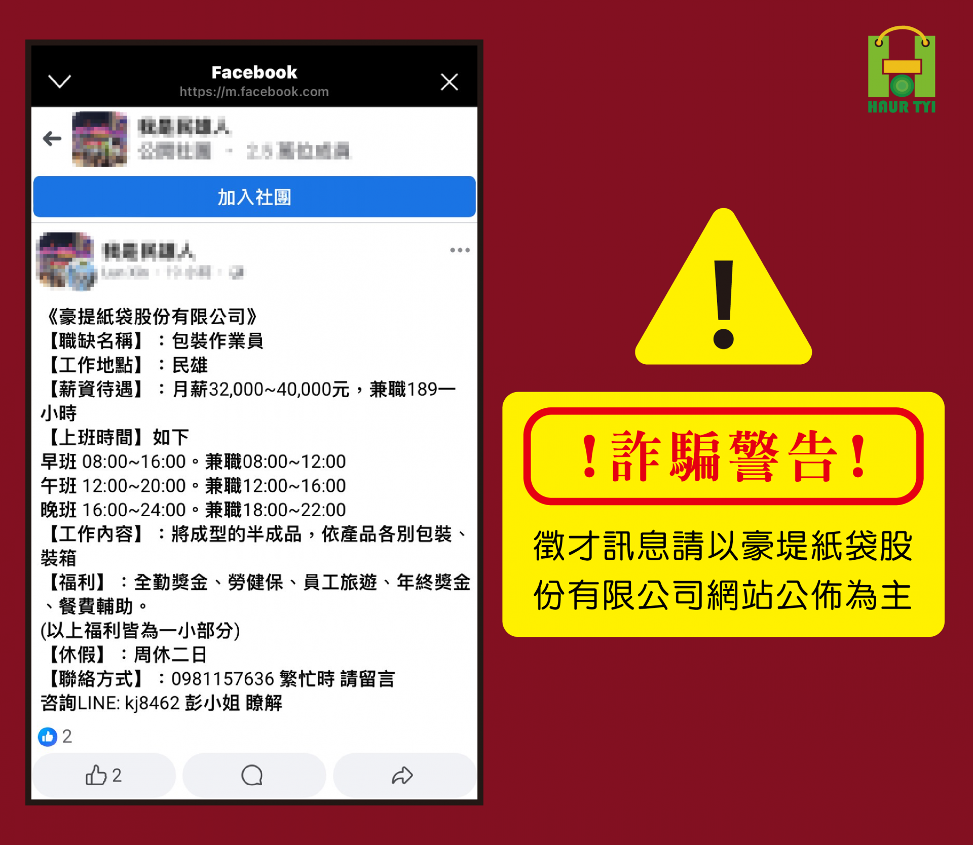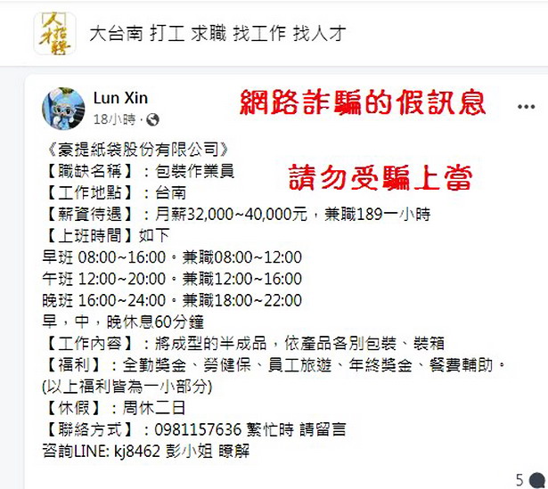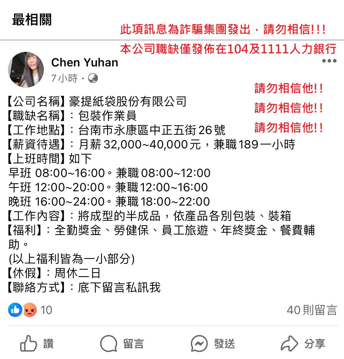 假藉豪堤紙袋在其他管道發怖的『假徵才』都不可信
