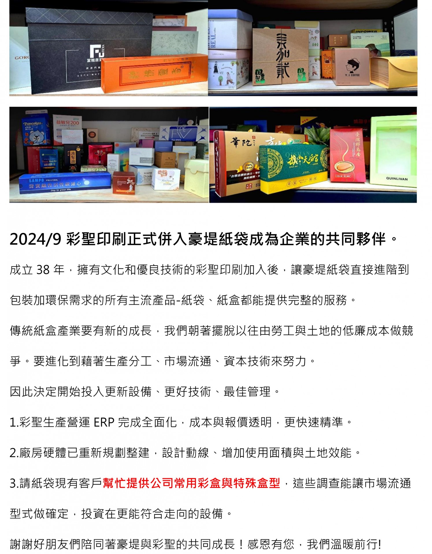 彩聖印刷與豪堤紙袋,成為企業的共同夥伴。