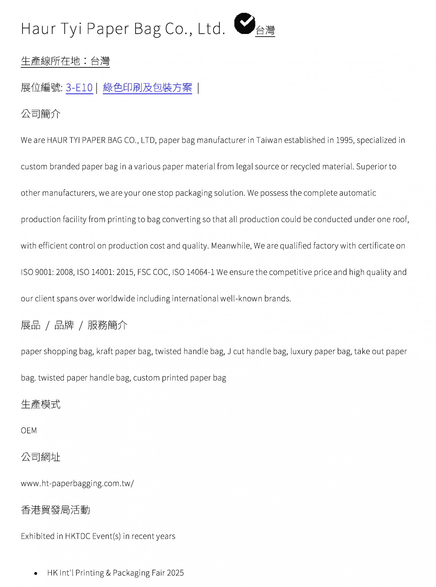 豪堤紙袋4/27至4/30在香港亞洲國際展覽館3-E10展位迎接您