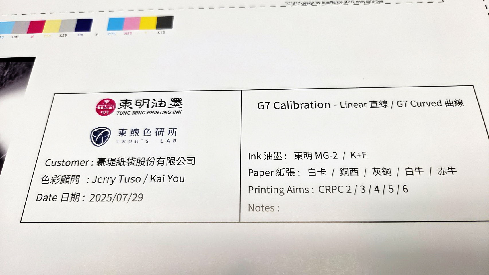 完成全植物油墨印刷G7標準